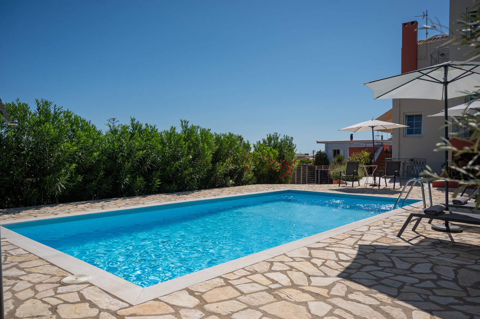 Villa Artia is close to daily needs and pleasures. It is a 5-minute walk from the organized beach of Xiropigado, a beach with deep crystal waters and pebbles ending, at the edge of the wave, in coarse sand. Cafes, taverns, restaurants, mini markets and grocery stores are just a stone’s throw away.